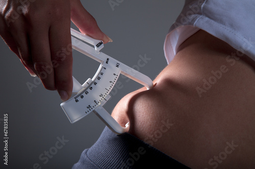 Fettmessung mit Fettzange am Hüftspeck Nahaufnahme