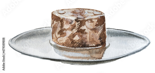 Bowl full of cat food. Watercolor food for cats concept painting. Pet nutrition design. Domestic animal care.