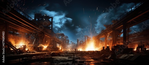 A Fiery Inferno: The Intense Beauty of a Steel Factory in Flames Created With Generative AI Technology