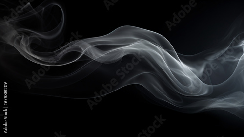 Vague de fumée blanche sur fond noir. Effet flou, vague en mouvement. Arrière-plan pour conception et création graphique, bannière.
