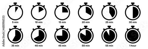 Timer and stopwatch icons. Time clock, Label cooking time. Vector. Chronometer stopping hour, minute, second symbols. Illustration of speed countdown and intervals, alarm set.