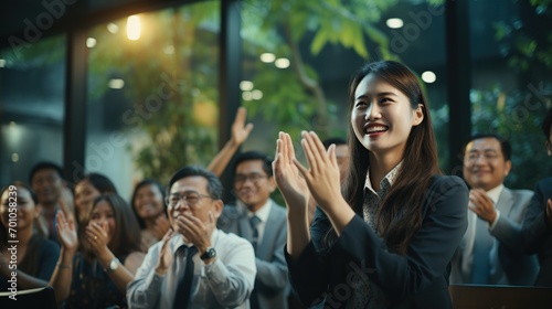 Target growth, finance team and diversity of business group clapping for support and happiness. Company success. Generative AI