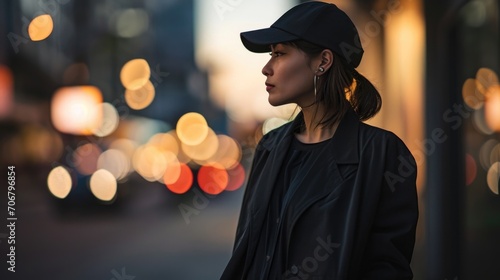 A uni baseball cap paired with a structured blazer and wideleg pants, breaking traditional gender norms and blurring the lines between masculine and feminine fashion.