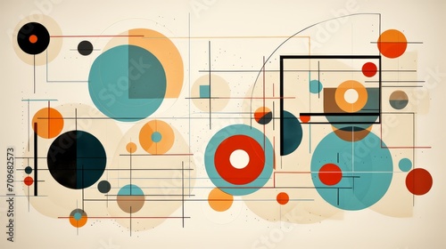 Dynamic fusion: abstract poster illustrating the interplay of squares and circles, modern art design