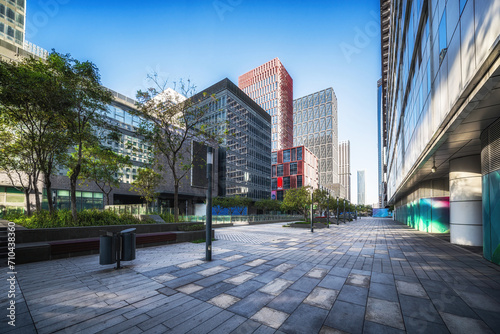 Sunny Cityscape with Modern Buildings and Trees