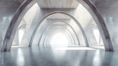 3d render of abstract futuristic architecture with concrete floor.