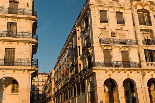 Sunrise view on boulevard Zighoud Youcef in the historic Casbah district of Algiers city. Algeria. Africa.