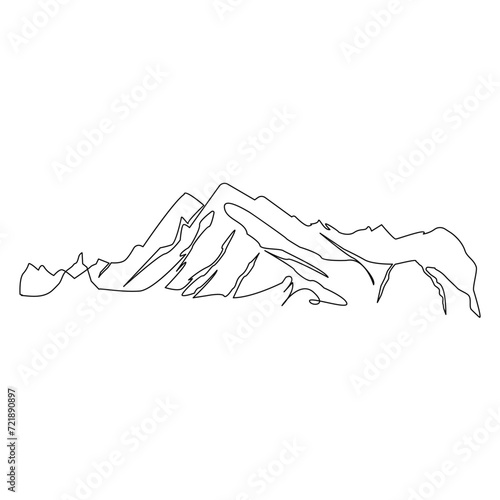 Continuous one line drawing of mountains range landscape vector outline art illustration.