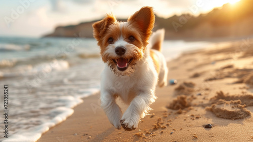 Fröhlicher Küstenflitzer: Ein Hund genießt das Rennen am Strand