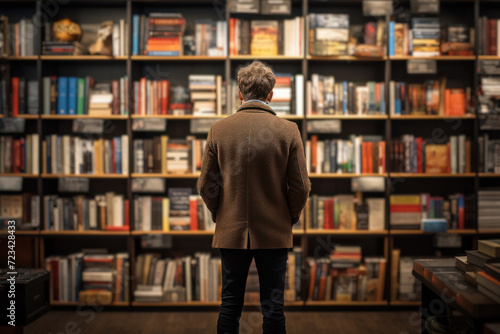 A person organizing shelves in a bookstore, representing the importance of order and customer service in retail. Generative Ai.