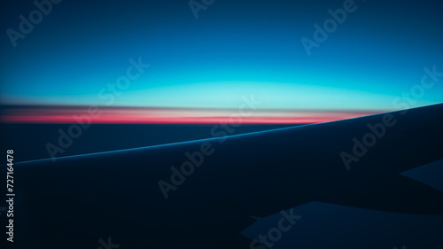 Captured from a plane window, the sunset's horizon meets the sky, leaving a seamless trail, a testament to the beauty of aerial vistas and nature's grandeur