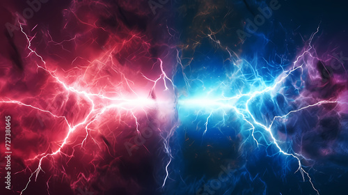 Roaring thunderstorm, shocking lightning shines in the dark sky