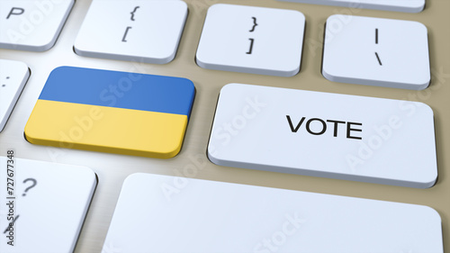 Ukraine Vote in Country. National Flag and Button 3D Illustration