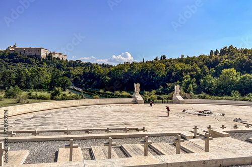 The Benedictine abbey on Monte Cassino in Italy seen from the Polish war cemetery