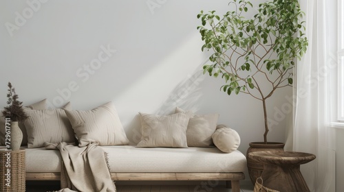 Springtime coziness fills the interior room, complete with blooming potted flowers.