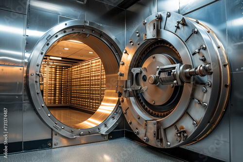 Open Bank Vault Door Revealing Safety Deposit Boxes in Depositary
