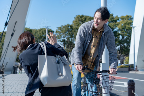 自転車で人にぶつかる男性