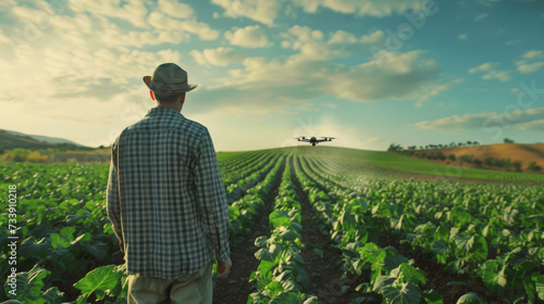 A Farmer Using Drone Technology on the Farm for analyze seed growing