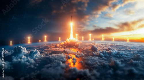 panorama de la Terre avec plein de missiles nucléaires en train de décoller - illustration