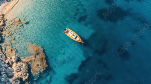 A breathtaking aerial view capturing a luxurious yacht gracefully gliding through the azure waters