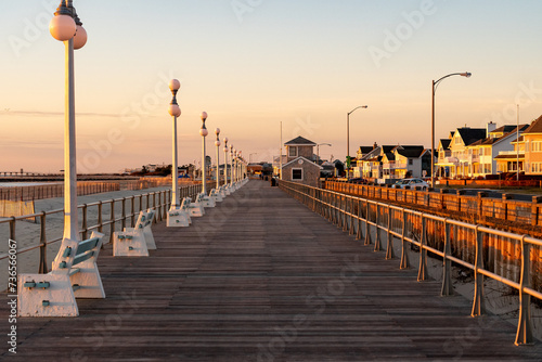 Avon By the Sea, New Jersey, USA - Golden hour sunrise on the boardwalk