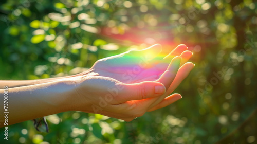 Hands holding some color energy and magnetism