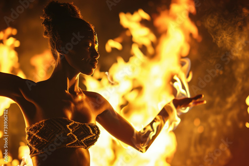Fiery Dance: A Black Woman's Beauty Against Flames