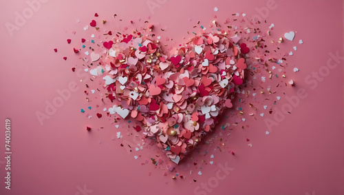 Muttertagsgruß mit Herzen aus Konfetti auf rosa Hintergrund