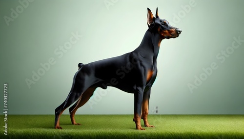 Doberman Pinscher in Elegant Stance on Green - Generative AI
