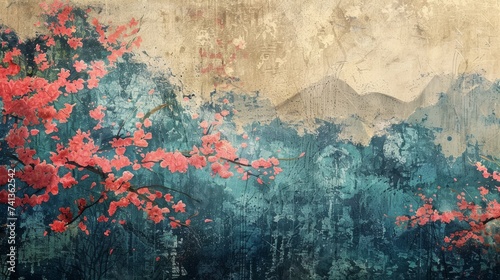 Abstract vintage Japanese painting style, background, wall decor, painting