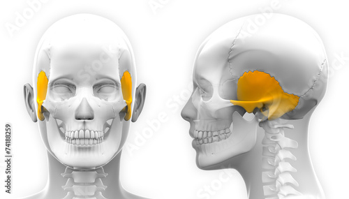 Female Temporal Bone Skull Anatomy - isolated on white