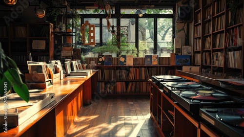 Concept of vinyl and listening bar, communication and musical experiences, retro music, music socializing and audiophile community.