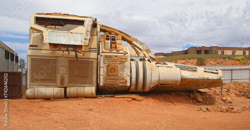 Old movie prop from the film "Pitch Black" abandoned in the desert of Coober Pedy (South Australia) - Spaceship set used during the filming of a Hollywood movie