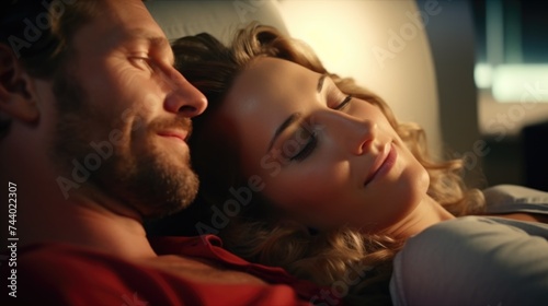 A man and a woman laying comfortably on a couch. Suitable for lifestyle and relaxation concepts
