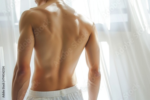 後ろから見た日本人男性の背中・腰(腰痛・姿勢・肩こり)
