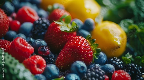 Vibrant close-up of a healthy mix of fruits and vegetables, emphasizing the variety of natures palette