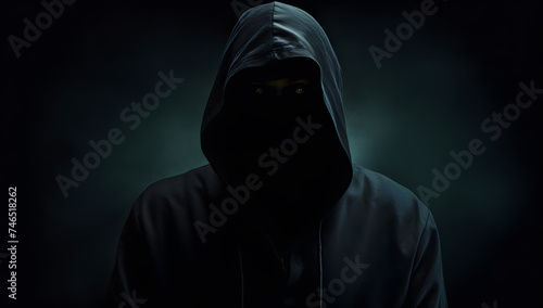 Dark man silhouette. Hacker in the hoodie on the dark