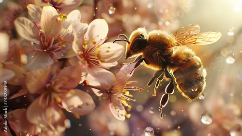 Bee Honey Flower Bees buzzing around vibrant flowers, harvesting nectar for honey in a commercial setting