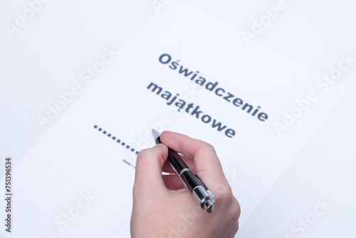Wypełniać oświadczenie majątkowe, z bliska, kartka z polskim napisem ,,oświadczenie majątkowe,,