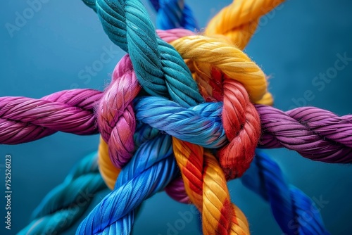Rope with a knot as a concept of diverse strength, partnership, teamwork and network