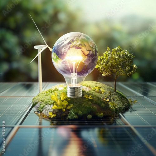 Odnawialne, zielone, ekologiczne źródła energii. Turbiny wiatrowe i panele fotowoltaiczne