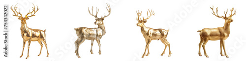 Golden Stag Statues in Various Poses Isolated on Transparent Background.