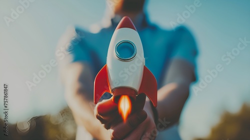 Person with Rocket Symbolizing Launch and Progress, Rocket, launch, person