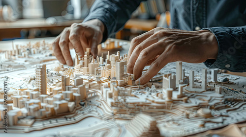 architects working on business model of buildings , 3d maps, Real estate Construction.