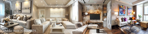 Moderne Zimmer im Möbelhaus - Wohnzimmer, Innenarchitektur Panorama