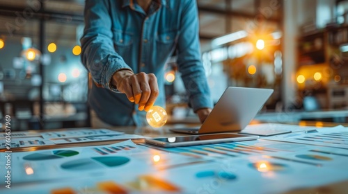 Innovative business leader demonstrates cutting-edge business approach on tablet