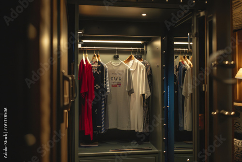 Organized Closet Concept: Locker Among Hangers Inside Wardrobe