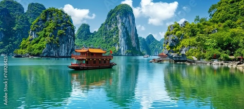 Halong bay unesco site limestone islands, emerald waters, vietnam travel destination wallpaper