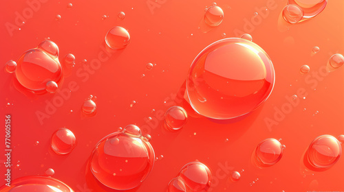 large and small water droplets on a smooth red surface, which creates a feeling of freshness and cleanliness