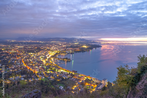 City of Bregenz am Bodensee (Lake of Constanze), toward the Rhine Delta and Swiss Mountains, State of Vorarlberg, Austria